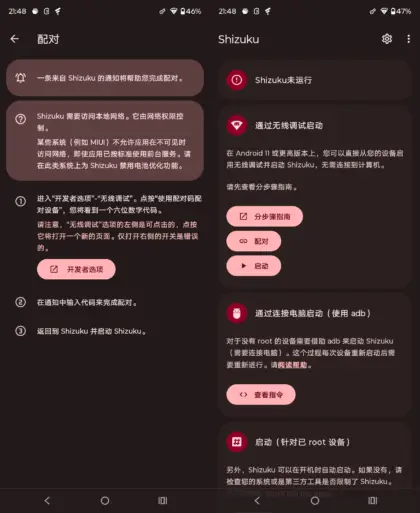 通过无线调试免 Root 启动 Shizuku